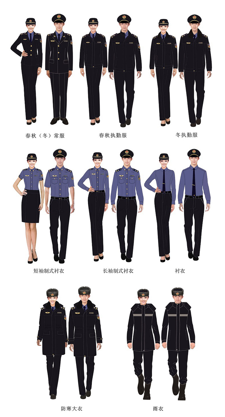服裝顏色為藏青色及天空藍(lán)色,搭配金色標(biāo)志。服裝功能主要考慮適應(yīng)城市管理執(zhí)法工作場所多在戶外、街頭的實(shí)際,便于執(zhí)勤活動(dòng)。另外,《辦法》起草過程中,住建部還參考了公安、工商、食藥監(jiān)、海關(guān)等統(tǒng)一著裝部門的經(jīng)驗(yàn)做法,先后赴北京、西安、長沙、成都、???、黑河等14個(gè)城市進(jìn)行了調(diào)研,范圍覆蓋了熱區(qū)、亞熱區(qū)、南溫區(qū)、北溫區(qū)、寒區(qū)、高寒區(qū)等全部6個(gè)氣候區(qū)域,明確制服和標(biāo)志標(biāo)識(shí)的供應(yīng)種類為帽類、服裝類、鞋類、標(biāo)志標(biāo)識(shí)類、裝具類5大類18小類。